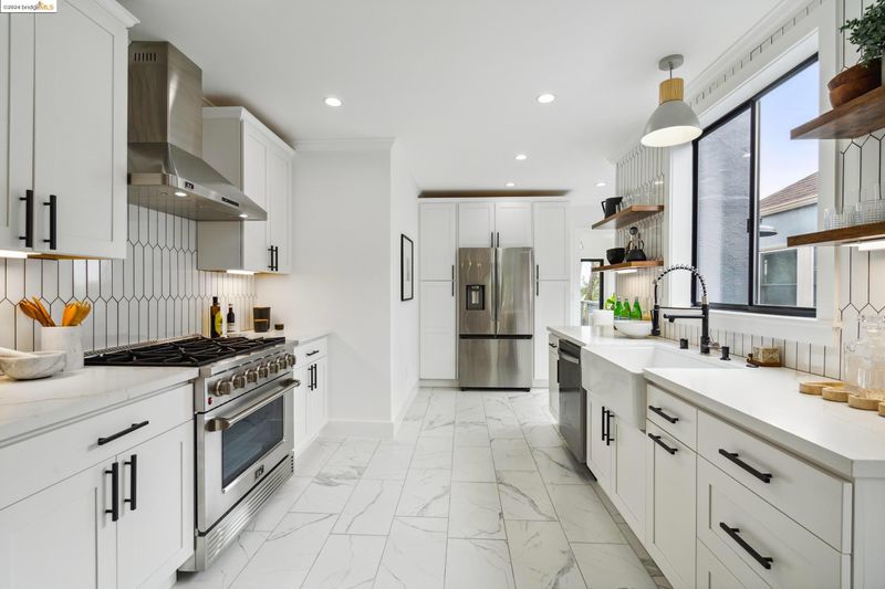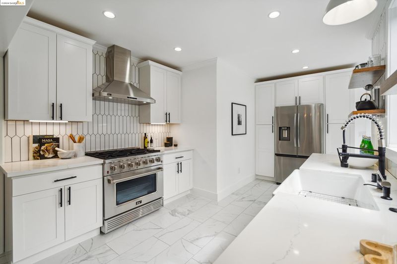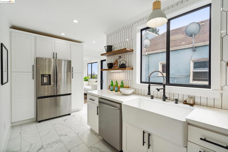 - Dishwasher, Free-Standing Range, Refrigerator, Tankless Water Heater, Counter - Solid Surface, Range/Oven Free Standing, Updated Kitchen