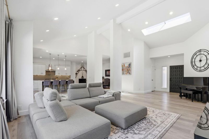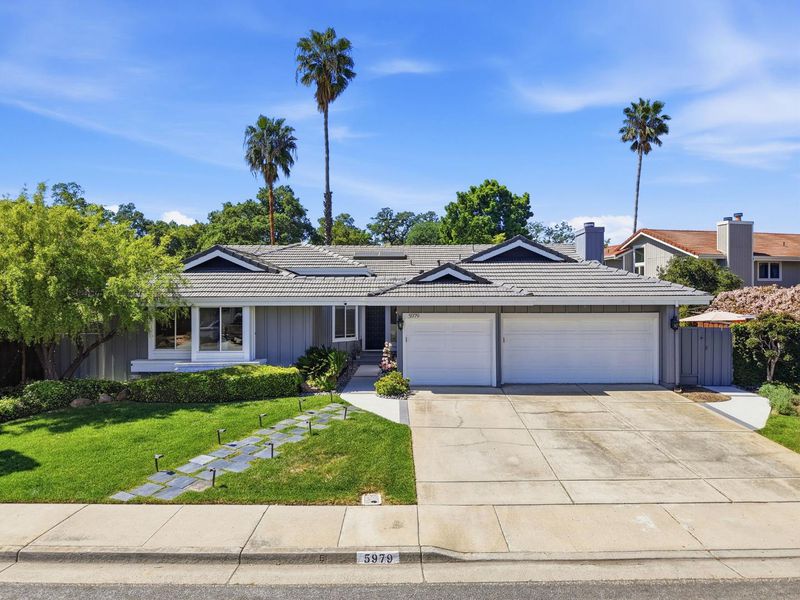 Welcome to 5979 Starwood Drive, a beautifully remodeled single-level smart home in the highly desirable Almaden Valley. The home features a bright open floor plan, soaring ceilings, and designer finishes throughout. The living and dining areas showcase stunning custom Italian marble accent walls, while the chefs kitchen offers a quartz waterfall island, premium appliances, and seamless indoor-outdoor flowperfect for entertaining. Enjoy modern convenience with full smart home integration, including voice control, security cameras, Tesla solar, EV charger, and smart thermostat. The spacious primary suite features vaulted ceilings, dual closets, and a spa-inspired bathroom with soaking tub and skylight. Three additional bedrooms provide flexibility for family, guests, or office. Step outside to a private backyard with patio, lawn, and mature landscapingideal for relaxing or hosting. Bonus: Seller has plans for a second-story expansion and potential attached ADU, offering incredible upside for future value or multigenerational living. Located near parks, trails, golf, shopping, dining, and top-rated schools (buyer to verify). A rare opportunity combining turnkey living, smart technology, and future expansion potential in one of San Jose's most sought-after neighborhoods.