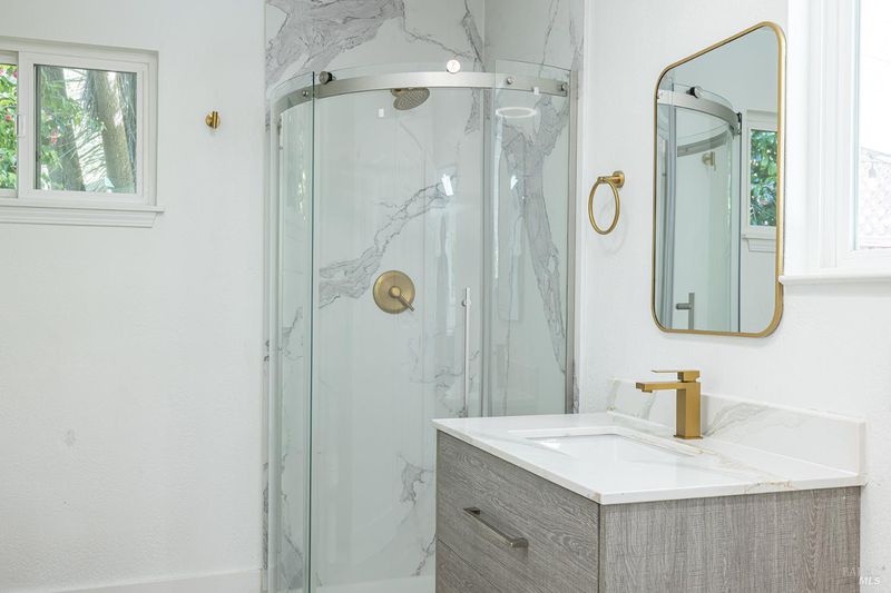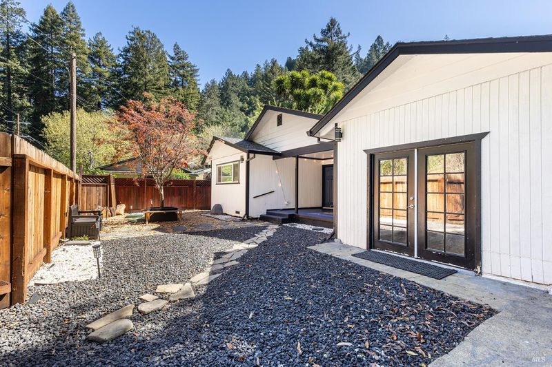 Welcome to your serene retreat near the Russian River, set on a beautiful, sun-drenched lot in the heart of Monte Rio's original Vacation Wonderland. This chic home offers two spacious bedrooms and two bathrooms, with large windows throughout that flood the interior with an extraordinary amount of natural light. A truly rare find for a Russian River retreat. The living room takes center stage with a stunning quartz fireplace, while the kitchen blends style and functionality with beautiful quartz countertops. The bathrooms echo the same refined aesthetic, featuring quartz countertops and stylish floating vanities. A versatile flex room with its own electric fireplace offers the perfect space for a home office, artist's studio, or yoga retreat. The Frenchwood hinged inswing doors open to your own private backyard oasis, complete with a hot tub, concrete patio, and a fully fenced yard, made for entertaining or simply unwinding under the redwoods. One of the most coveted perks? Close river access. A short distance from the iconic Monte Rio Community Beach, the largest public beach on the lower Russian River. Just across the historic Monte Rio Bridge, you'll find charming inns, excellent restaurants and bars, and a wine and cheese shop. The Monte Rio Amphitheater hosts concerts and theater under the stars, and world-class wineries; redwood-lined biking roads, fishing, and hiking trails are all close at hand. Golf enthusiasts will appreciate the nearby Northwood Golf Club, a nationally ranked nine-hole course nestled alongside the river beneath towering redwoods. Whether you're searching for a full-time residence or a weekend getaway, this property delivers the perfect blend of refined style, natural beauty, and the laid-back magic that makes the Russian River impossible to forget.
