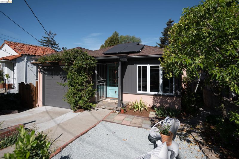 Get ready to fall head-over-heels for this adorable 2+ bed, 1 bath bungalow in prime El Cerrito. Smart upgrades such as owned solar panels with a battery backup, an EV charger, an energy-efficient heat pump for heating and cooling, and beautiful new (2026) and refinished hardwood floors. A flexible third space at the back of the house is ready to become your dedicated home office, inspiring workout room, or cozy guest retreat.* The kitchen features gorgeous Heath tile, handsome quartz countertops, a wall oven with a side swing door, and gas cooktop. Easy access to the garage and laundry. Outside, you’ll find two fantastic spaces: a front garden perfect for soaking up the sun and socializing with the neighbors, and a wide-open back garden with a mix of sun and shade. The peaceful soundtrack of the creek just beyond the back fence seals the deal, creating a truly tranquil atmosphere. Convenient access to shops, restaurants, freeway, transportation and El Cerrito BART. Broker's and Twilight Tour 3/26 10 am to 1 pm and 6-8 PM. Open house Sat 3/28 and Sun 3/29 from 1-4 PM.