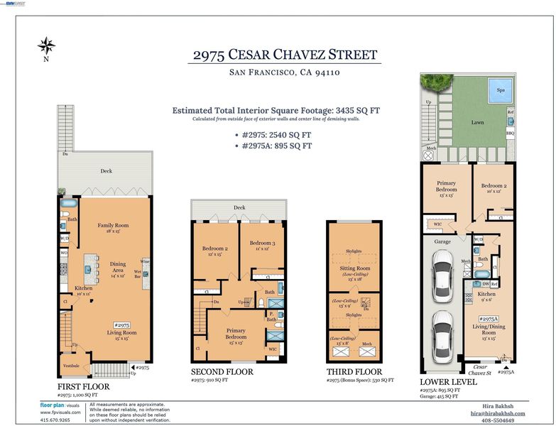 Nestled in the foothills of Bernal Heights, just moments from vibrant Precita Park and the scenic trails of Bernal Hill with sweeping 360 degree city views, 2975 Cesar Chavez offers a rare blend of modern design, flexibility, and effortless city living. Rebuilt from the foundation up in 2022, this light filled home lives like new construction, with new electrical, plumbing, HVAC, roof, foundation, sewer lateral, water heater, and windows. The main residence features 3 bedrooms, 3 bathrooms, and a versatile bonus attic space. The open concept living area flows through bi-fold doors to a private deck, complemented by a sleek kitchen, wet-bar, and integrated home theater. The backyard is a low maintenance oasis with an outdoor wet kitchen, built in BBQ, beverage cooler, and an 8 person hot tub. The equally luxurious separate 2 bedroom 1 bathroom unit features its own full kitchen and high end finishes, ideal for guests or rental income. Additional highlights include a two car tandem garage with EV charging, heated bathroom floors, integrated sound system in every room, smart features, blackout blinds, and a security system. A rare opportunity to own a modern, light filled home that perfectly captures the best of Bernal Heights living.