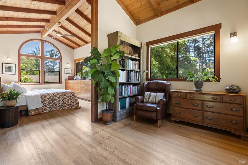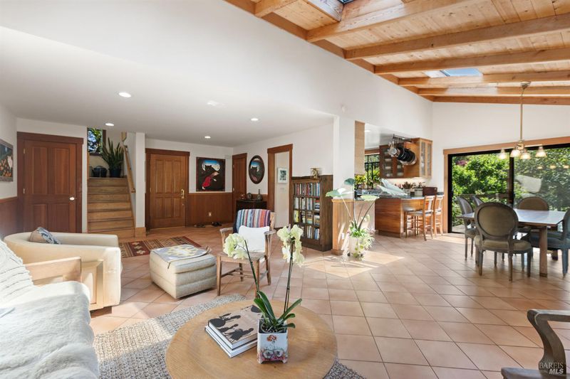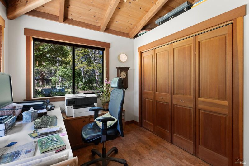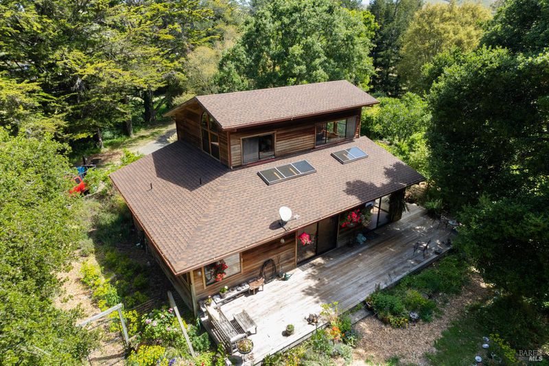 This special property is a private sanctuary with a beautifully designed home set on 1.25 level acres at the end of a long lane. A one owner home, built in 1991 by a well-respected builder and engineer, it has quality finishes and was designed as a full-time residence for his family. The house is welcoming, spacious and comfortable, with great natural light and views to the outdoors from every room. There is a large open living room with high ceilings and skylights, a big dining area, both with access to a wrap around deck for great indoor/outdoor access. The land is level and beautifully developed into a park-like setting. The main level has 2 bedrooms, a full bathroom and views to the outdoors. The kitchen is for cooks, with a Viking range, fan hood, solid cherry cabinets and beautiful countertops, all open to dining area for entertaining. Upstairs is a wonderful large primary bedroom retreat with views all around the land, built-in storage, a walk-in closet, and sitting room to relax in. There is a large primary bathroom with stall shower and soaking tub with views. There are high ceilings, skylights, marble and other high quality finishes throughout the house. The outdoors is a private oasis with sitting areas, mature landscaping, and a separate workshop studio with electricity and an automated apple press. The garden has many varieties of fruit trees, bulbs, cork trees and pathways to meander and relax. It's all private and quiet, and the garden is low maintenance. There is a greenhouse in back, plus an RV pad and even room for a boat or kayaks. Great infrastructure, with municipal water, PG&E, propane and septic, all kept up and functioning. This home feels like a sanctuary and yet it is close enough to town to get to the shops on foot, bike or by car. It is a half mile from the turnoff for Lucas Valley Road with easy access to 101. This property feels relaxing and healing, with privacy, quiet and space. At night the owls will hoot, the birds will sing in the morning, and you will experience the magic of nature, while being able to access the Point Reyes National Seashore beaches and the vibrant community that has grown around it. Only a half mile from the turnoff to Lucas Valley for access to 101, this location and setting are noteworthy. Come see.