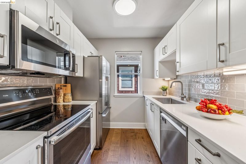 - Dishwasher, Electric Range, Microwave, Free-Standing Range, Refrigerator, Dryer, Washer, Gas Water Heater, Counter - Solid Surface, Electric Range/Cooktop, Disposal, Range/Oven Free Standing, Updated Kitchen