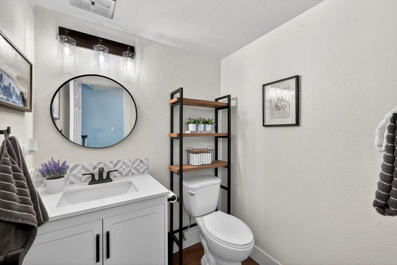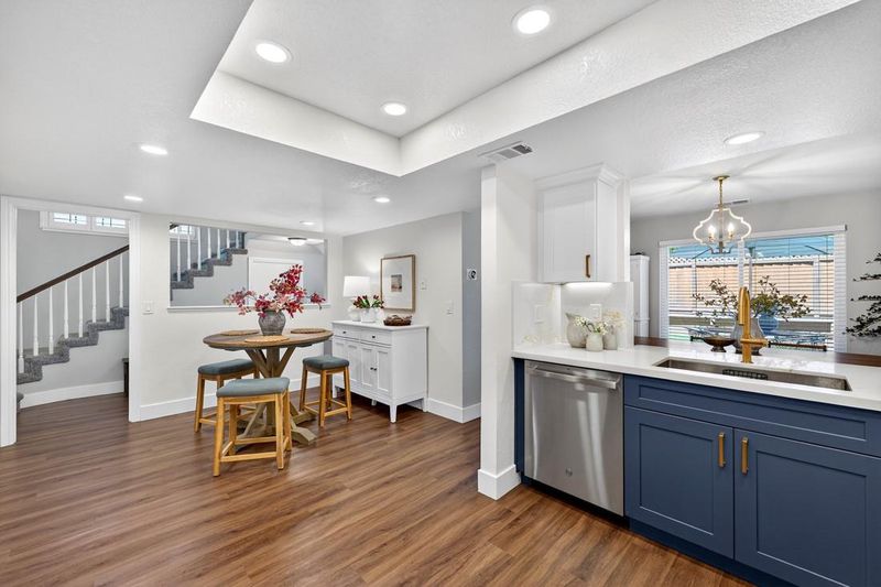 Welcome to this beautiful Morgan Hill home, which has been nearly entirely remodeled over the past 5 years in a quiet poolside view location. At the heart of the home is a fully remodeled kitchen (2025) featuring new cabinetry with soft-close hardware, quartz countertops and backsplash, under-cabinet lighting, and new GE Profile stainless steel appliances. The space flows seamlessly into the dining and living areas, enhanced by new LVP flooring, updated lighting, and refined finishes throughout. Both bathrooms have been stylishly renovated with quartz vanities and updated fixtures, while the primary suite offers a refreshed retreat with new paint, flooring, and an upgraded bath. Additional improvements include new Milgard windows and sliding doors, updated baseboards, fresh interior and exterior paint, and modern hardware throughout. Major system upgrades provide peace of mind, including new exterior trim, gutters, fencing, garage door and opener, water heater, and a Tesla EV charger. The backyard has been newly landscaped with fresh sod, updated irrigation, and space to relax or entertain, making it perfect for enjoying Morgan Hills' indoor-outdoor lifestyle.