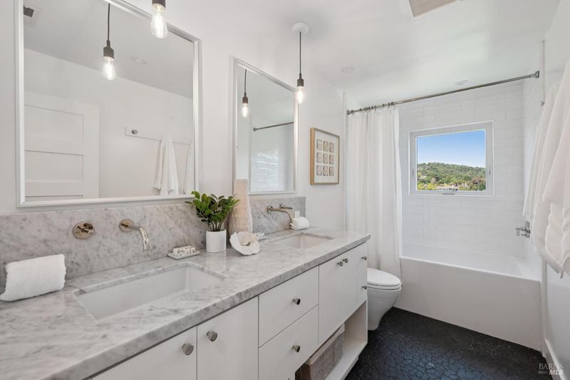 Beautifully updated waterfront home with 4 bedrooms plus an office and 2.5 baths, offering serene, private indoor-outdoor living. Light-filled spaces open to expansive bay and lagoon views. Enjoy a resort-like setting with a fire pit, bocce court, and multiple areas for relaxing and entertaining.