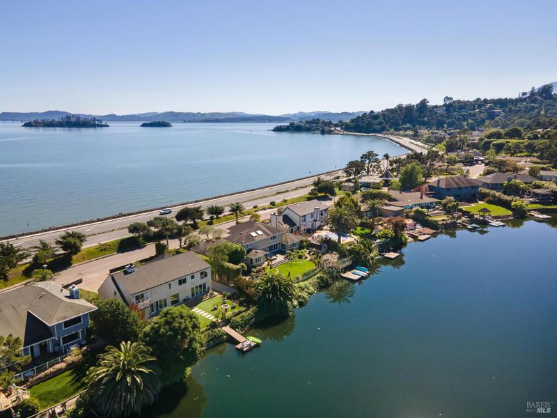 Set against a backdrop of sweeping Lagoon AND Bay views, this exceptional waterfront retreat offers a rare blend of privacy, design, and resort-style living. Rebuilt in 2017 with meticulous attention to detail, the residence is thoughtfully designed to embrace its surroundings, with water on both sides and seamless indoor-outdoor flow. The main level unfolds into a series of light-filled living spaces anchored by a chef-caliber kitchen, opening effortlessly to expansive outdoor areas ideal for entertaining or quiet relaxation. Floor-to-ceiling windows frame the ever-changing water vistas, bringing a sense of calm and connection throughout the home. Outside, the property truly comes to life. Lounge by the fire pit as the sun sets over the lagoon, host gatherings around the bocce court, or dine al fresco in multiple seating areas designed to take full advantage of the stunning setting. Upstairs, 4 well-appointed bedrooms, including a spacious primary suite, offer comfort and privacy, many with tranquil water outlooks. Equal parts sophisticated and inviting, this is a home designed for living well, where every day feels like a getaway.