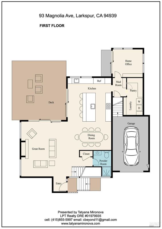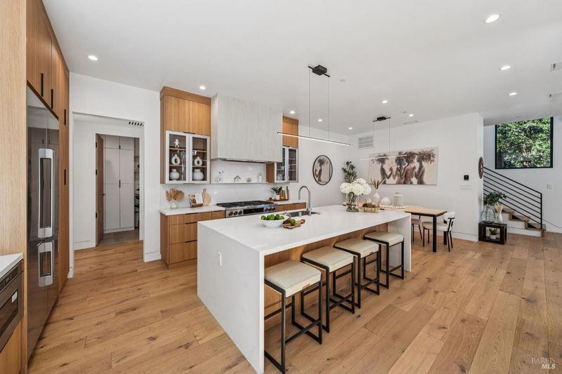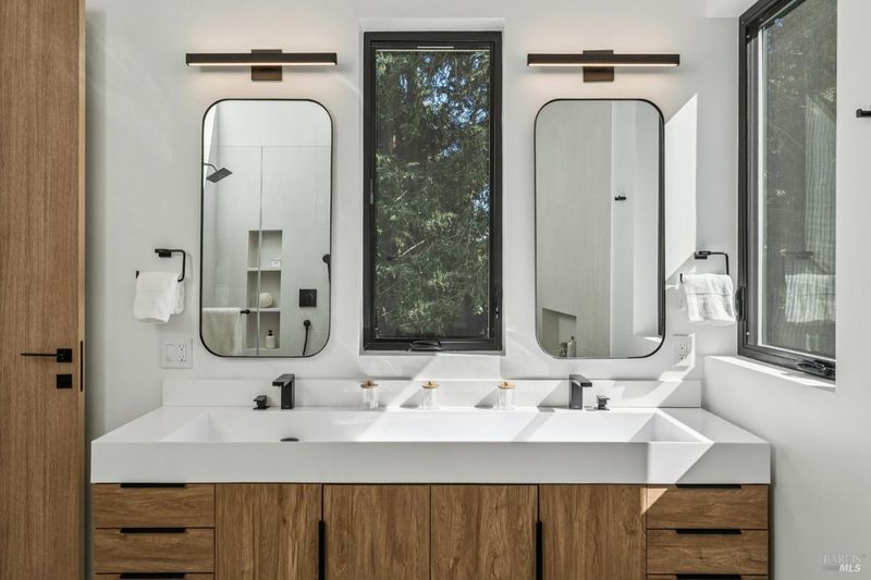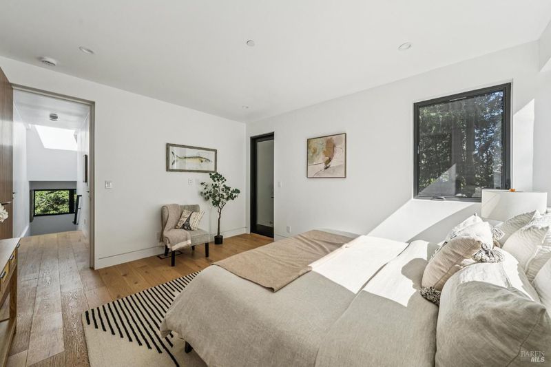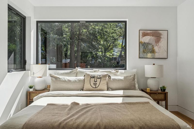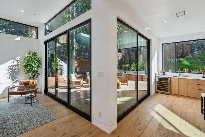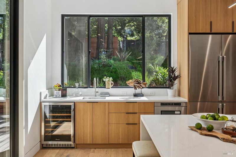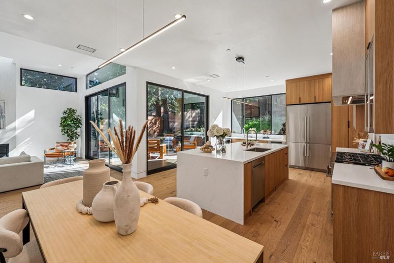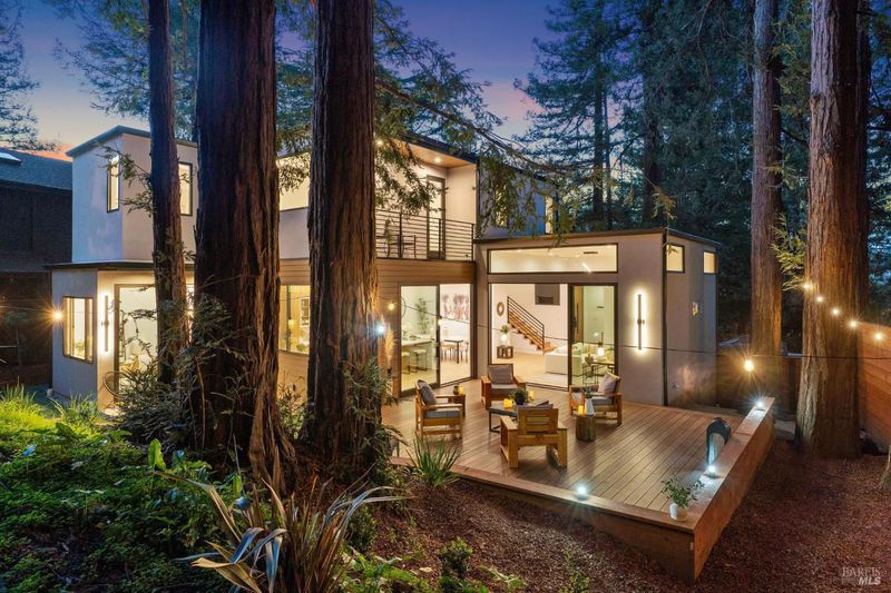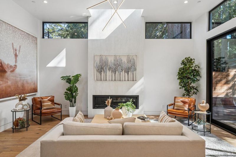 A rare opportunity to own a brand-new modern architectural home in the heart of Larkspur, just moments from the vibrant shops and restaurants of Downtown Larkspur and the redwood trails of Madrone Canyon Preserve. Designed for seamless indoor-outdoor living, this striking residence features soaring ceilings, expansive skylights, and dramatic sliding glass walls that open to a sun-filled deck framed by towering redwoods, creating a serene, private outdoor retreat. Mature redwood trees surround the property, offering peace, privacy, and a true connection to nature right outside your living spaces. The thoughtfully designed floor plan offers three bedrooms plus a dedicated office and three full baths, ideal for modern lifestyles. Main living areas flow effortlessly to the outdoors, creating the perfect setting for entertaining or relaxed everyday living. High-end fixtures, designer lighting, and premium appliances complement the home's sophisticated aesthetic, while wide-plank flooring and custom details bring warmth and balance to the modern design. Set behind a rare circular driveway with two curb cuts, the property offers exceptional parking and convenience a prized amenity in this coveted neighborhood along with an attached garage. Enjoy the best of Marin living just steps from coffee at Equator Coffees, dining at Perry's on Magnolia, charming local boutiques, and scenic hikes through towering redwoods. Modern design, exceptional walkability, and the tranquility of redwoods at your doorstep a truly special offering in one of Marin's most beloved communities.