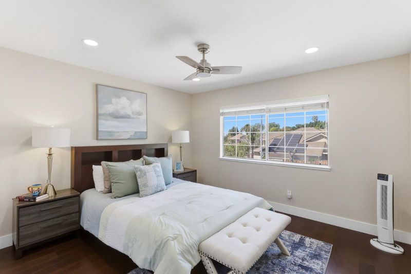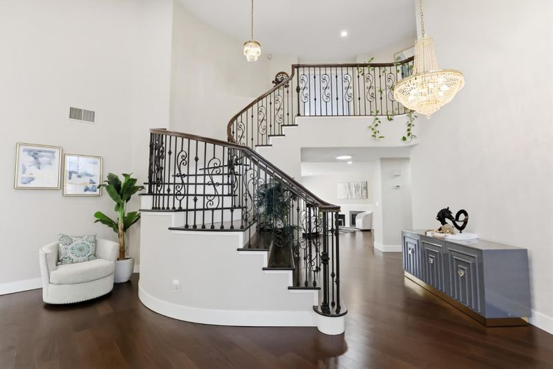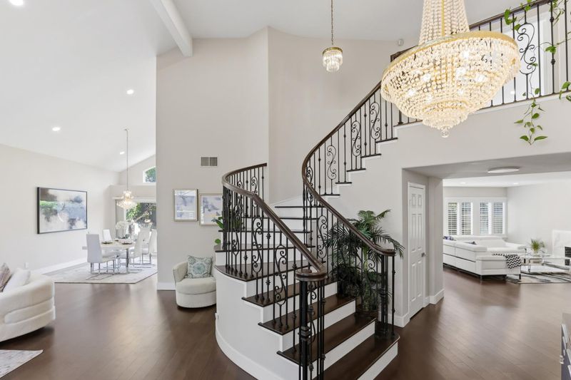 A Forever Home in the Heart of Evergreen. Gracefully positioned on a coveted street, this exceptional Northeast-facing residence blends timeless elegance with modern comfort. Set along a rare stretch of wide avenues and expansive lots, the home offers both privacy and presence.Inside, rich Brazilian walnut floors create warmth and continuity throughout. The reimagined chefs kitchen features custom cabinetry and premium Wolf and Sub-Zero appliances, ideal for everyday living and entertaining.The home offers five bedrooms and three full baths, each thoughtfully updated with quality materials and designer finishes, creating spa-like retreats.Step outside to a private backyard designed for California living, complete with a custom pergola, outdoor kitchen, low-maintenance landscaping, and artificial turf. An exceptional collection of fruit trees includes orange, lemon, peach, pomegranate, Asian pear, jujube, apple, apricot, plum, and fig. Additional highlights includes solar and a three-car garage with epoxy flooring. Ideally located near Evergreen Village Square, Montgomery Hill Park, and top-rated schools including Matsumoto Elementary, Chaboya Middle, and Evergreen Valley High.