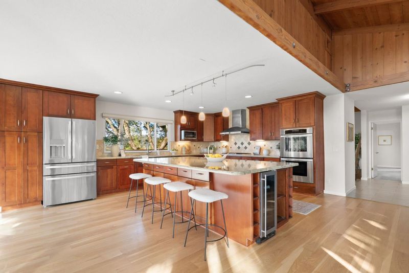 One of the best values in Aptos privacy, acreage, and sweeping views at a price point that's increasingly hard to find. Set on 1.36 acres, this nearly 3,000 sq ft home offers the space and serenity buyers are searching for but rarely find this close to town. Sunlight pours through the home, highlighting vaulted open-beam ceilings and creating a warm, inviting atmosphere anchored by a cozy fireplace. The kitchen is designed to bring people together, featuring granite countertops, an oversized island, built-in appliances, and a wine refrigeratorperfect for both everyday living and effortless entertaining. With four bedrooms and three full baths, the layout offers flexibility for guests, remote work, or multigenerational living. The primary suite is a peaceful retreat with a walk-in closet and tranquil views. Step outside to expansive decks where you can take in breathtaking sunsets, entertain with ease, or unwind in the hot tub under the stars. The usable acreage provides space for gardening, animals, or additional parking for RVs, boats, and guestsan uncommon find in Aptos. A full-house Generac generator adds comfort and peace of mind.
