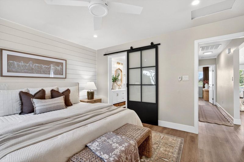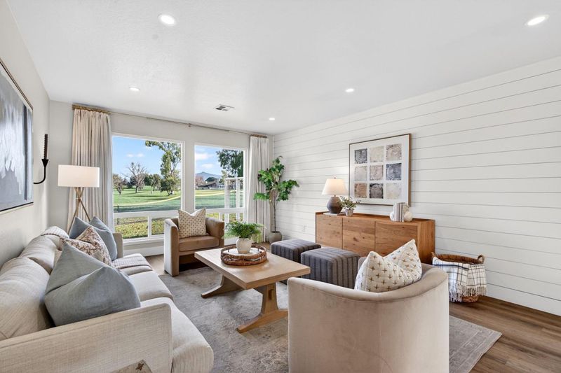 Updated townhouse offering easy, low-maintenance living. Ideal for first-time homebuyers or those looking to downsize to a single-story home with no steps. The interior has been updated with on-trend finishes including luxury vinyl plank flooring, shiplap accents, new windows, custom tilework, wainscoting, and updated light fixtures and faucets. The kitchen features butcher block countertops, floor-to-ceiling backsplash, breakfast nook, dining area, and a reverse osmosis water filtration system. Skylights bring in abundant natural light, while central A/C provides everyday comfort. The primary bathroom features a double vanity, brand-new shower door, a frosted glass barn door for privacy with light flow, and an adjacent walk-in closet. The attached garage offers an epoxy-coated floor, finished walls, cabinet storage, and a full pegboard wall for organized storage. Outside, refreshed landscaping with drip system, a fully fenced side yard, and bistro lighting create a private, low-maintenance outdoor space ideal for pets. Ample guest parking steps away, and common areas have been recently slurry-sealed. The Sunrise HOA includes water, sewer, and trash. Residents enjoy gated golf course living with access to golf, tennis, pickleball, walking trails, clubhouse, restaurant, and bar.