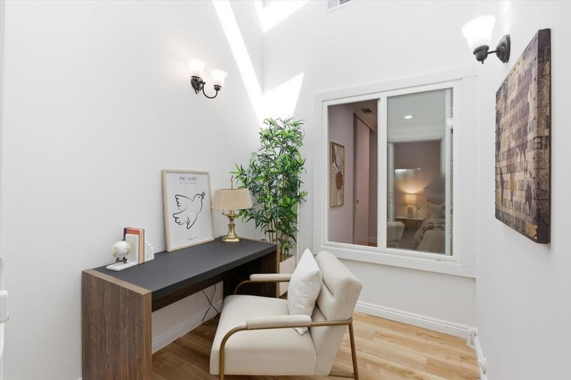 Single Family like Living in this Gorgeous Cupertino ONE LEVEL Home with Versatile 2BR + Bonus Flex Space. Nestled in a quiet cul-de-sac within Cupertino's most desired gated community, De Anza Oaks. Perimeter lot location delivering rare privacy & one of the community's most spacious backyard settings. Light and Bright with soaring vaulted ceilings. Modern renovations throughout! Luxe Kitchen and Baths remodeled in 2022 with high-end cabinetry, modern countertops, and premium fixtures. Wide plank flooring offers a sleek, durable finish well suited for everyday living. Well appointed features include serene primary suite, indoor laundry, copper plumbing, dual pane windows, & skylights. Pristine garage with all white walls & professional grade epoxy flooring, ideal for a gym or workshop. 2 EV charging ready in the carport, essential for the modern South Bay commute. The triple crown of schools with Stevens Creek Elementary, Kennedy Middle, and Monta Vista High. Community amenities include a junior Olympic pool, children's pool, clubhouse, playground, park, & walking trails... all inside the gates. Close to major Silicon Valley employers including Apple, Google, LinkedIn, Meta, & Nvidia, with convenient access to Whole Foods, Trader Joes, Sprouts, Target, and Main Street shopping.