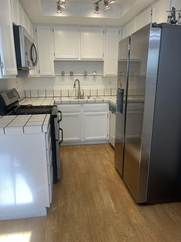 NOTE: All interior photos used for this listing were re-generated using AI Genie for clients privacy and personal belongings and may have slight differences.This 3-bedroom, 2.5 bathroom home located in the vibrant city of San Jose. A private end unit with a fenced landscaped side yard for this spacious 1,220 sq ft layout, and approximately 400' finished garage with climate control and recessed lighting. This residence boasts high vaulted and cathedral ceilings in the bedrooms and stairway. Freshly painted kitchen featuring a double oven and dishwasher. Open-concept family and dining rooms offer a seamless flow, perfect for entertaining. Enjoy cozy evenings outside on your private garden Patio or snuggle by the living room fireplace. The property features laminate flooring, providing a modern look and easy maintenance. Laundry facilities are located in the garage, maximizing interior space.With central AC and central forced air heating, comfort is ensured year-round. Short walking distance to light-rail or VTA for a car free commute. Other amenities include three walk-in closets in the primary for ample storage. There is also a large unfinished attic for extra storage. This home is a rare find because of its unigue features both indoors and outdoors, And YOU will love this home!