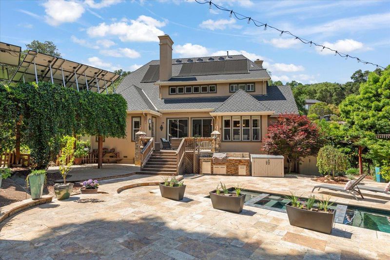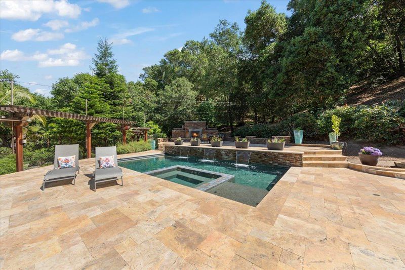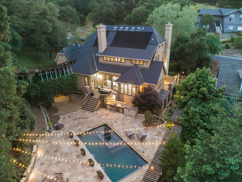 What if you could come home every day and feel like you are on vacation? Located in the Westside hills known for larger custom homes and low turnover, this is where homeowners stay for years and opportunities like this are rare. From the moment you arrive, you'll notice the timeless English-style architecture, a pavered driveway, and standout curb appeal. Inside, the home offers a spacious, light-filled layout with fresh interior finishes and a design that's both comfortable and functional. With two-zone HVAC, a whole house fan, and an owned 8+ kilowatt solar system, you get efficiency without sacrificing comfort. This is a home designed for everyday living and effortless entertaining. Step outside and everything changes. A custom pool and spa, solar heated, a fully equipped outdoor kitchen and a stunning stone fireplace create a true backyard retreat. And what really sets this property apart, you are surrounded on two sides by over 60 acres of forest. No rear neighbors. Just complete privacy and a peaceful hillside setting. In addition to the three-car garage with built-in workspace and storage, there's a bonus ~240 square foot room above the garage. Assigned to Christopher High and walking distance to Luigi Aprea Elementary, both, top rated local schools.