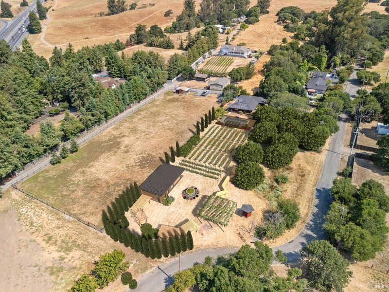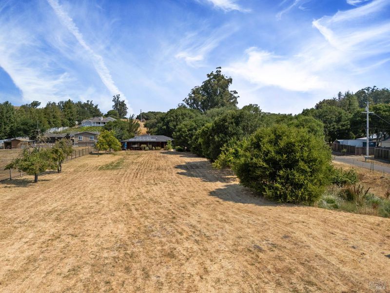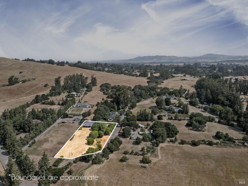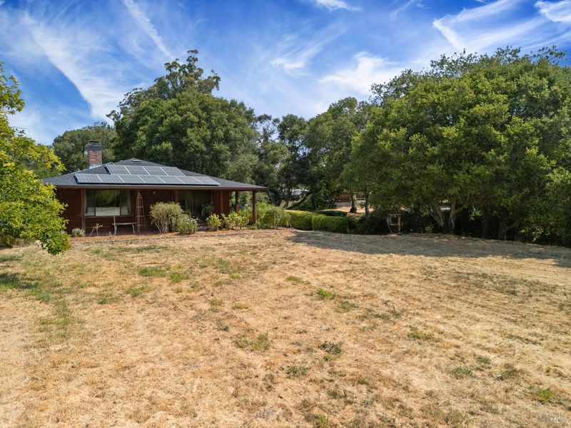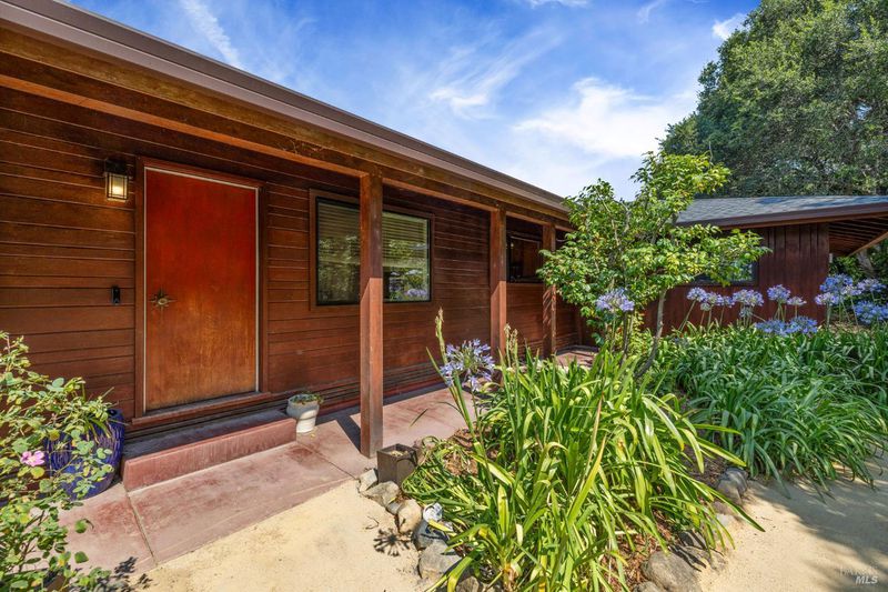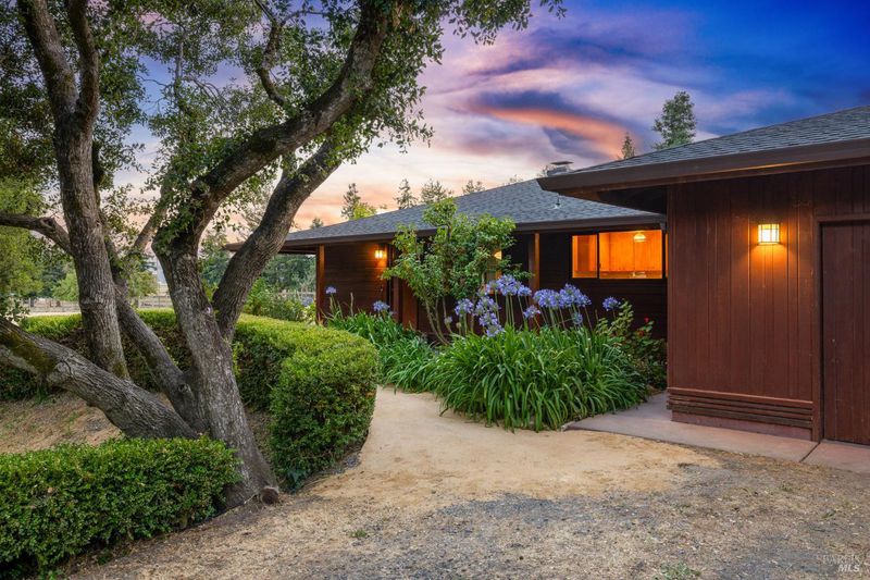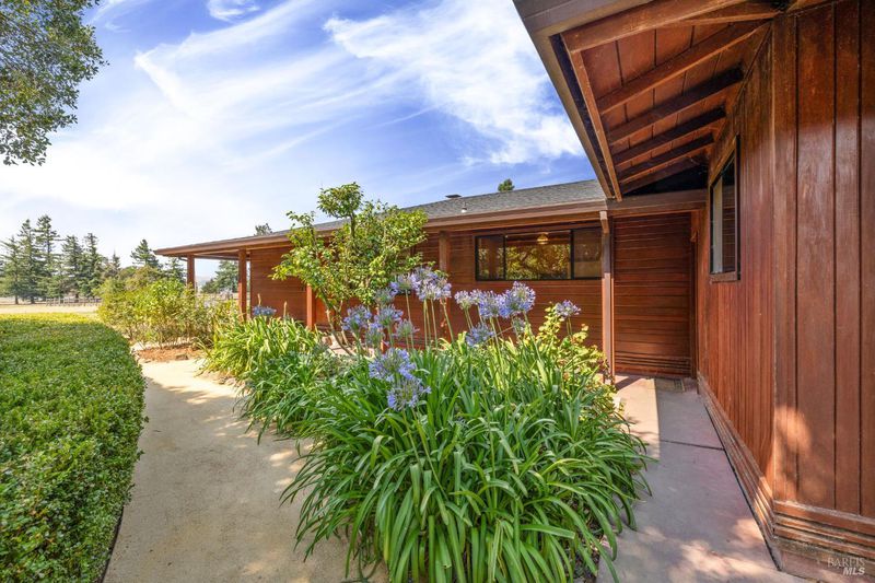Welcome to this Swiss hand-crafted, Mid Century country Home, rich with character set on 1.41 level acres down a tree lined country road-fittingly named Orchard Lane. Cross over the fairytale stone bridge to This 3 bedroom 2 bathroom home just under 1500 Sqft has a thoughtfully designed kitchen catering to the chef of the household and a warm inviting open layout with an abundance of light from picturesque large paned windows with view of trees and country pastures. The master suite is just the right size with tastefully updated primary bathroom, with tiled floors, dual vanity and walk in shower. The exterior of the home is equally as charming with Rich Colored Redwood Siding and beautifully landscaped path leading to the front door surrounded by colorful foliage, compact granite pathways and more. The covered wrap around porch leads out to your very own level acreage ready for your vision, ADU, Pool, Hobby Vineyard? Ample fruit trees and seasonal creek enhance the country charm. Modern upgrades blend effortlessly with newly installed solar system for energy efficiency and impressively low cost utilities. Penngrove was just named one of the Top 10 Best Small Towns to Live in the U.S. byTravel + Leisuremagazine, 5 mins from down town enjoy coffee, pizza and Penngrove market.
