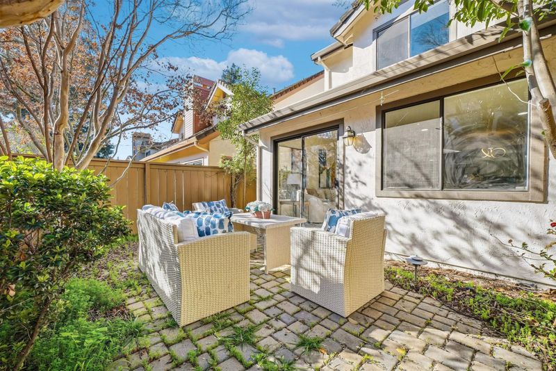Beautifully maintained Silicon Valley townhouse located in the desirable Hamilton Place community. This light-filled 2-bedroom, 2.5-bath home offers a functional 1,224 sq ft layout with a welcoming living room featuring hardwood flooring, a cozy gas fireplace, and access to a private outdoor patio. The kitchen includes tile countertops, breakfast bar seating, dishwasher, gas oven/range, garbage disposal, and refrigerator. Both bedrooms are spacious suites with updated baths, including showers over tubs and a large primary with dual vanities. Additional highlights include in-garage laundry, double-pane windows, vinyl/linoleum flooring, and plenty of storage throughout. Attached side-by-side 2-car garage plus guest parking add convenience. Located in a quiet cul-de-sac adjacent to Los Gatos Creek Trail and minutes from downtown Campbell, Whole Foods, shops, dining, and entertainment. Easy commute with quick access to HWY 17, 85, 280, and San Tomas Expressway. Low HOA dues include exterior maintenance, management, common area electricity, landscaping, roof, fencing, and insurance. A wonderful blend of comfort, location, and value in one of Silicon Valleys best-established communities.