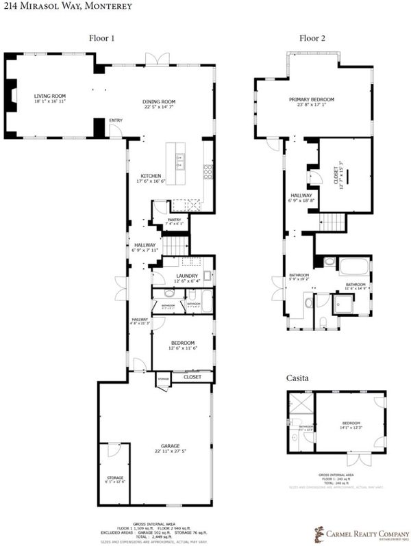 Nestled within the sought-after gated community of Pasadera home to the reimagined TPC golf course this 3-bedroom, 3-bath golf villa offers resort-style living with exceptional privacy. Ideally positioned between the front gate and clubhouse, the property spans two distinct living spaces the main house and a casita with generous entertaining areas, two sun-filled patios, and an outdoor fireplace for year-round enjoyment. The 2,450 square foot main house includes two bedrooms and two bathrooms across two levels. The main floor offers expansive, open-concept living spaces anchored by a ground-floor bedroom and full bathroom. Upstairs, the primary suite serves as a retreat, with a spacious bedroom, dedicated office area, walk-in closet, and a bathroom with an oversized soaking tub and separate shower. A private balcony off the suite enhances the spa-like feel and provides a serene vantage point to unwind and enjoy the views. The separate 240 square foot casitawith its own bedroom, full bathroom, and private entranceis ideal for guests, extended stays, or flexible use as an office or studio. Combining elegance, convenience, and the relaxed sophistication that defines life at Pasadera, this villa is a standout opportunity in one of the Monterey Peninsula's most coveted communities.