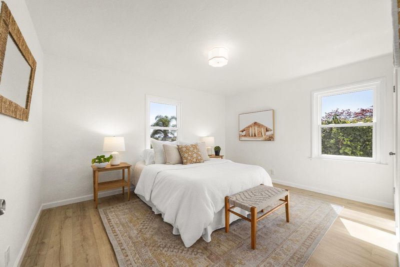 Live the dream on Santa Cruz's coveted Upper Westside. Set on a quiet cul-de-sac with peaceful peeks of the bay, this beautifully updated 3BD/2BA, 1,614 Sq Ft home, offers a rare blend of privacy, natural light, and indoor outdoor living just minutes from the coast. Vaulted ceilings, abundant windows, and wide plank white oak LVP floors create a bright, airy feel throughout. The updated kitchen features solid surface countertops, stainless appliances, and a layout that flows easily into the main living spaces. Separate living and family rooms provide flexibility for relaxing, entertaining, or gathering by the fireplace. Refreshed bathrooms feature stylish upgrades including a rain shower and lighted vanity mirror. Double pane windows, fresh paint, contemporary lighting, and a dedicated laundry and storage room add everyday comfort. Outdoor living shines with a private sunny courtyard, covered front porch, lush landscaped gardens, mature lemon tree and multiple patio areas perfect for outdoor dining, lounging, and entertaining. Ideally located near Swift Street Commons, popular restaurants, breweries, boutique shops, beaches, and Wilder Ranch coastal trails. A rare opportunity to enjoy the best of Upper Westside Santa Cruz living. Come for a sunset, stay for a lifetime.