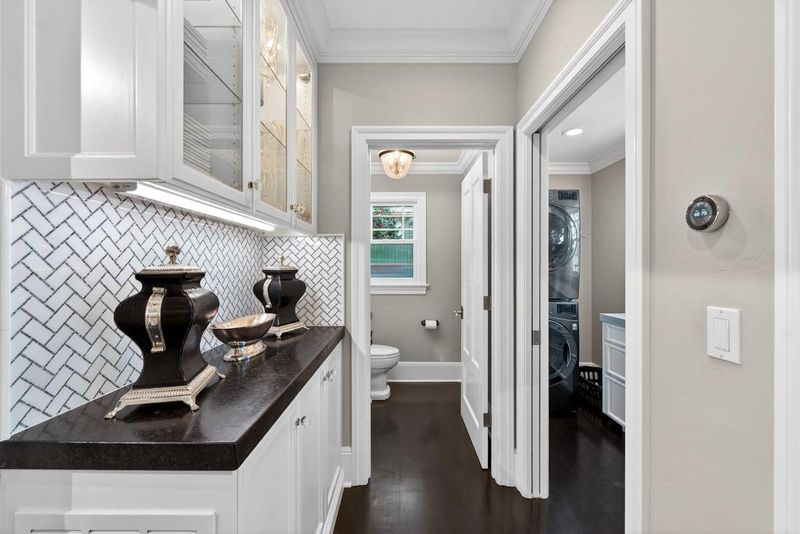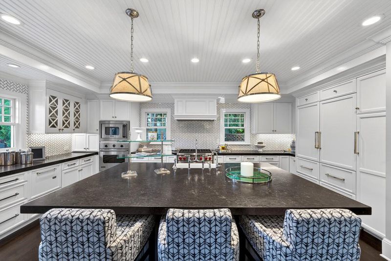 - 220 Volt Outlet, Countertop - Marble, Ice Maker, Dishwasher, Island with Sink, Cooktop - Gas, Freezer, Garbage Disposal, Microwave, Oven - Self Cleaning, Pantry, Wine Refrigerator, Oven Range, Refrigerator