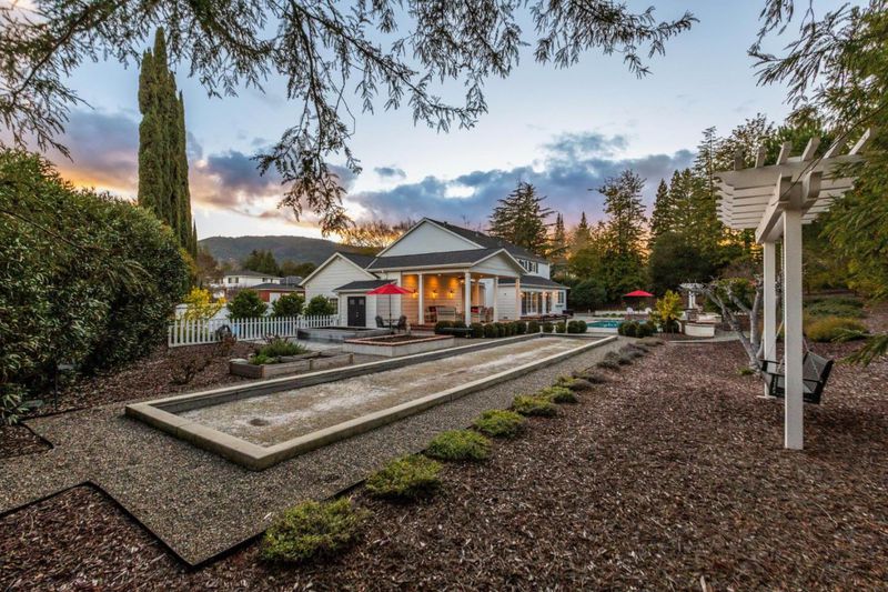 Located in the popular Twin Creeks neighborhood in Monte Sereno. This beautiful, stately Colonial sits at the end of a quiet cul-de-sac on almost 3/4 acres! The classic design enjoys expansive living spaces with beautiful finishes throughout: gorgeous hardwood floors, sleek granite & marble counters, lovely crown moldings/wainscotting. Spectacular views of the surrounding hillside are showcased through large picture windows. Spacious living & sep dining room, generous kitchen has state of the art appliances including Wolf range w/ 2 ovens, Wolf double wall oven, large breakfast bar & dining area, a dedicated executive office on main level w/ nearby full bath, great room w/ wall of windows & wet bar w/ wine fridge. Rear grounds built for entertaining w/ pool/spa, fire pit, covered lanai, putting green, bocce ball court. Blooms & variegated shrubbery, gorgeous landscaping-lovely retreat. Upstairs, find 4 generous bedrooms including large primary suite that overlooks the rear yard & hillside views w/ spacious bath, soaking tub, stall shower & walk-in closet. Coveted neighborhood w/ close proximity to downtown LG, HWY 9 & tech giants in Silicon Valley. Top Los Gatos schools include Daves elementary, Fisher middle & LG high school. Luxury & comfort for gracious living in Monte Sereno!